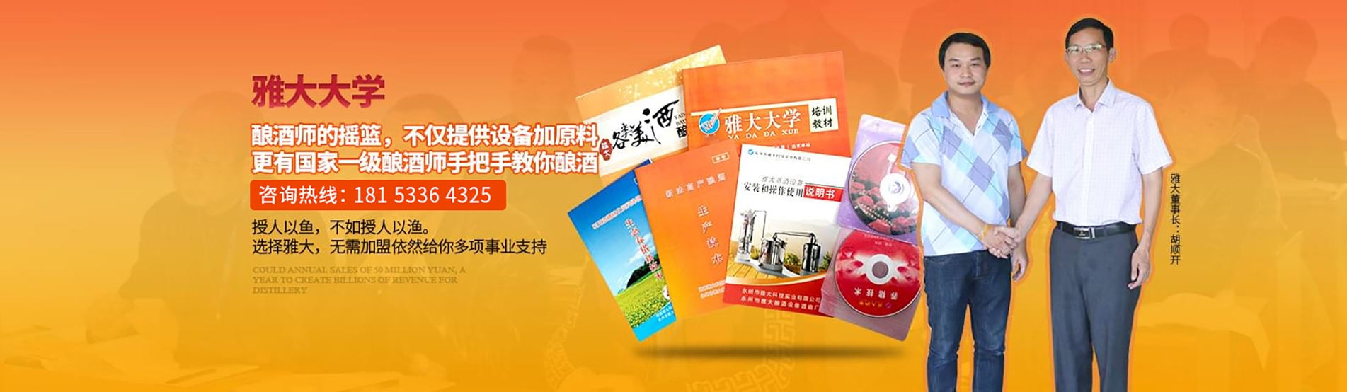 廠家提供釀酒配套原料配送服務(wù),雅大大學(xué),專業(yè)培養(yǎng)經(jīng)營意識與技能,讓零經(jīng)驗“小白”也能順利釀酒,輕松做老板
